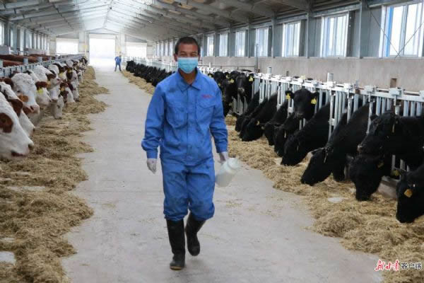 在甘肅農墾飲馬牧業公司,18名黨員在生產一線奮戰,牛群活動情況監測、飼料投喂、糞污清理等,每個崗位上大家一絲不茍地工作。