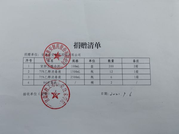 金秋九月,涼風送爽,又是一年開學季。為進一步助力疫情防控工作有效開展,弘揚“普惠眾生、安康萬家”的企業理念,近日甘肅藥業集團普安制藥(以下簡稱:普安制藥)向甘肅畜牧工程職業學院、武威第七中學捐贈宣肺止嗽合劑、乙醇消毒液、84消毒液等防疫物資,向涼州區黃羊實驗小學捐贈了20套愛心體育包(含籃球、足球、排球、羽毛球、乒乓球等)和一批防疫物資(宣肺止嗽合劑、乙醇消毒液和84消毒液),用實際行動支援疫情防控,助力開學季。