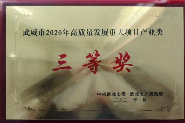 又獲獎(jiǎng)了!獎(jiǎng)金100萬(wàn)元!普安制藥榮獲武威市2020年高質(zhì)量發(fā)展重大項(xiàng)目產(chǎn)業(yè)類(lèi)三等獎(jiǎng)!