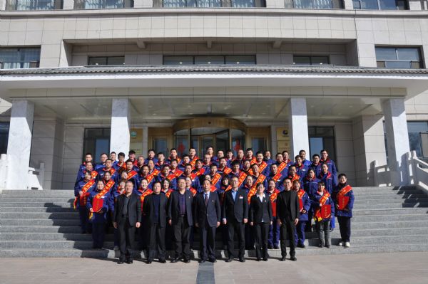 會議結束后,公司領導與受表彰人員在辦公樓前合影留念。