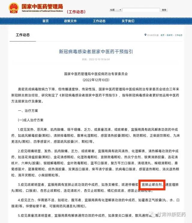 1月5日國家衛(wèi)生健康委辦公廳、國家中醫(yī)藥局綜合司發(fā)布的《新型冠狀病毒感染診療方案(試行第十版)》,在中醫(yī)治療部分,明確提出針對非重點(diǎn)人群的早期新冠病毒感染者,可參照《新冠病毒感染者居家中醫(yī)藥干預(yù)指引》《關(guān)于在城鄉(xiāng)基層充分應(yīng)用中藥湯劑開展新冠病毒感染治療工作的通知》中推薦的中成藥或中藥協(xié)定方,進(jìn)行居家治療。