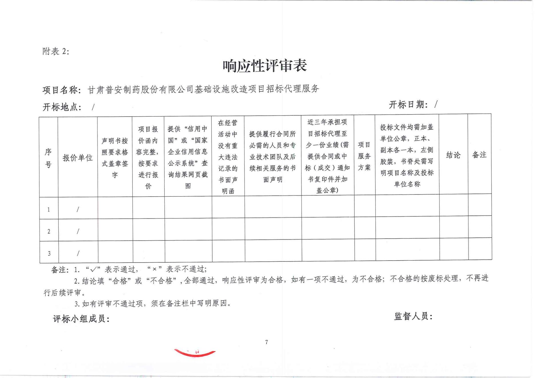 甘肅普安制藥股份有限公司基礎設施改造項目招標代理招標公告