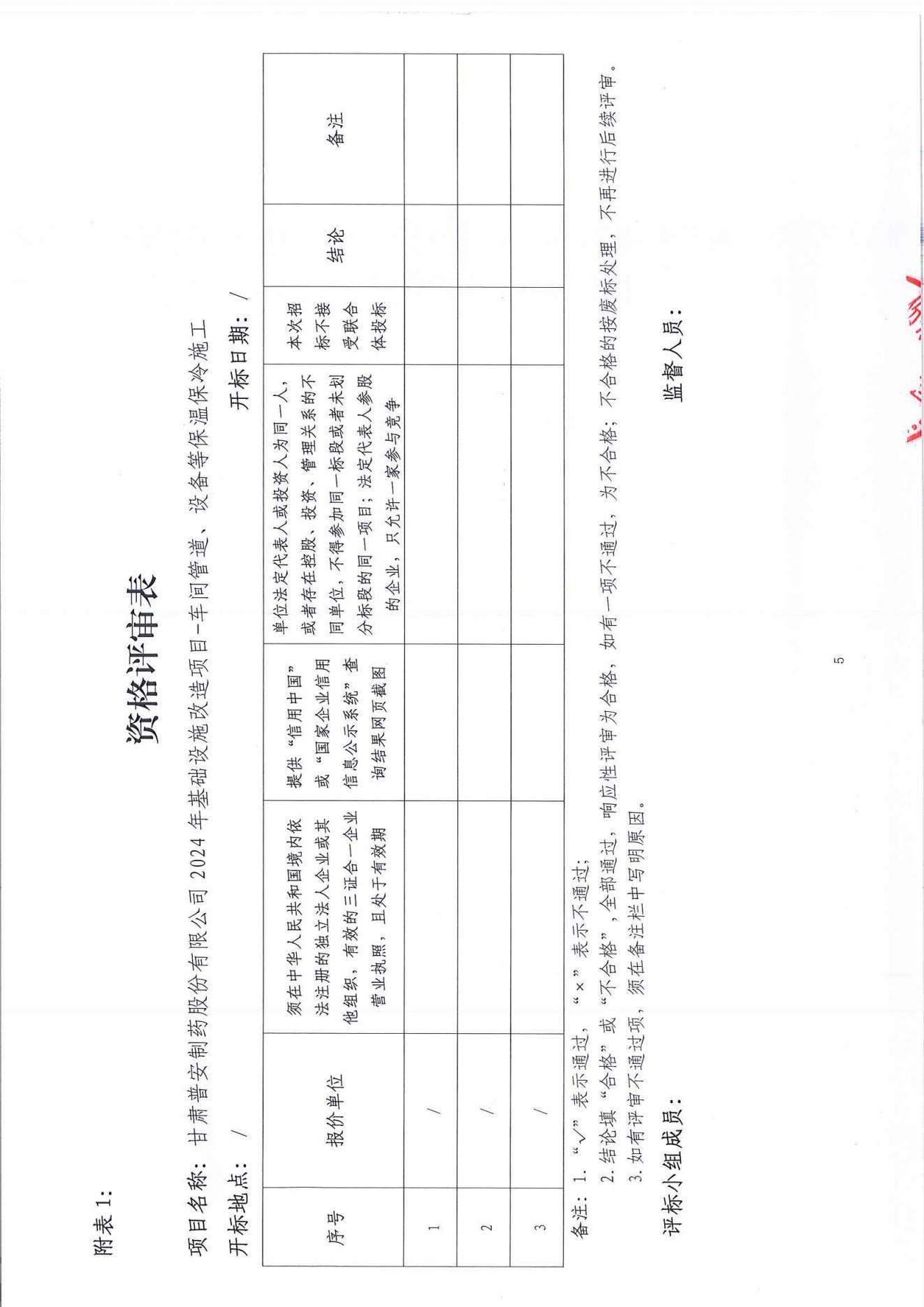 甘肅普安制藥股份有限公司2024年基礎設施改造項目-車間管道、設備等保溫保冷施工招標公告