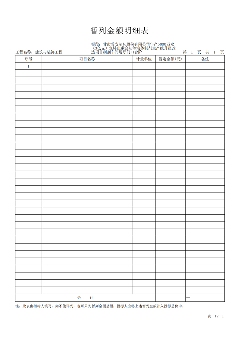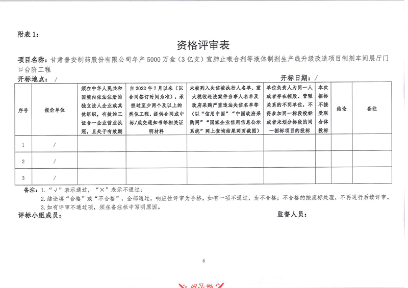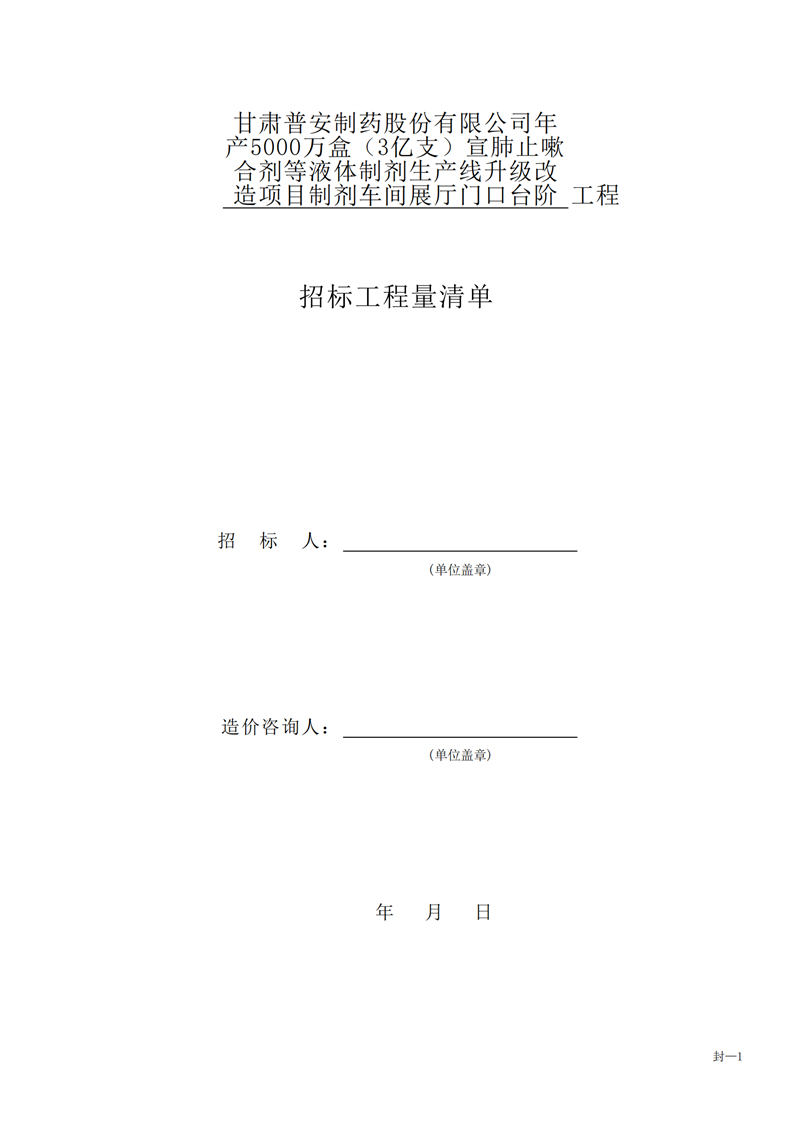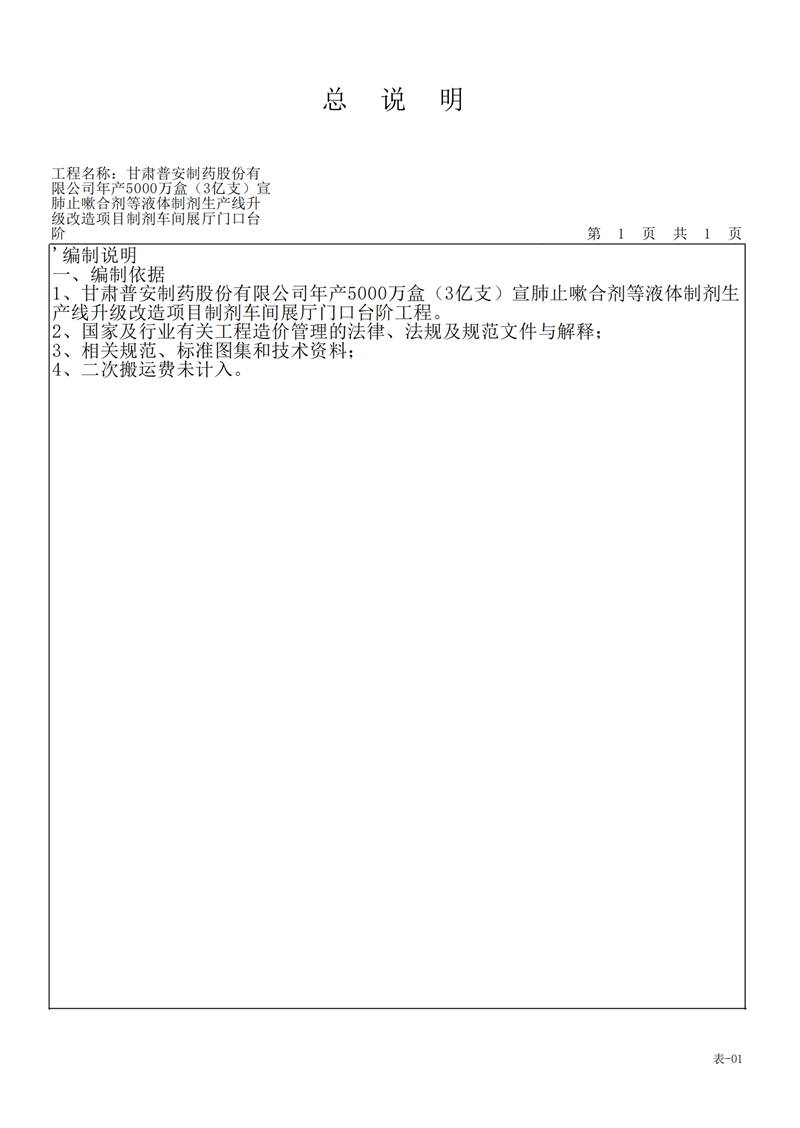 甘肅普安制藥股份有限公司年產(chǎn)5000萬盒(3億支)宣肺止嗽合劑等液體制劑生產(chǎn)線升級(jí)改造項(xiàng)目制劑車間展廳門口臺(tái)階工程招標(biāo)公告
